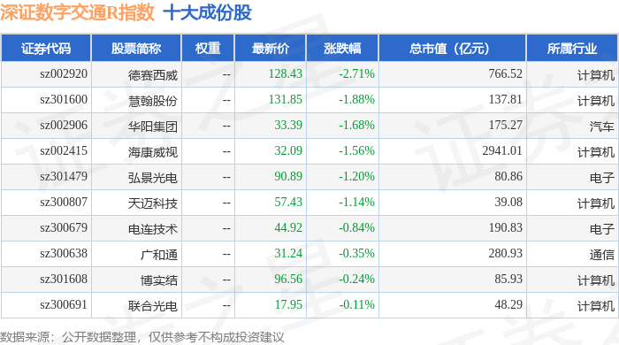 深证数字交通R(470049)指数十大成份股详情如下: