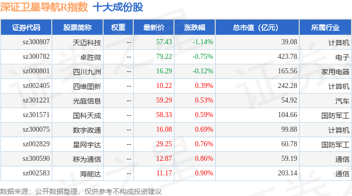 深证卫星导航R(470050)指数十大成份股详情如下: