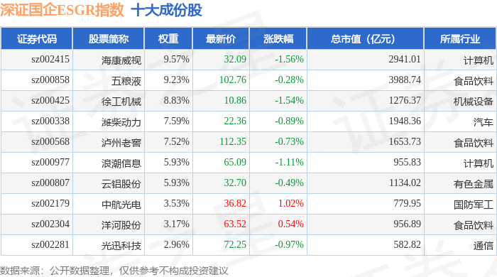 深证国企ESGR(470055)指数十大成份股详情如下: