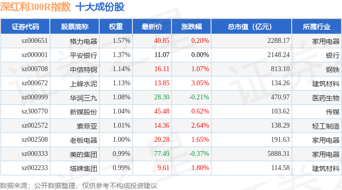 深红利300R(470062)指数十大成份股详情如下: