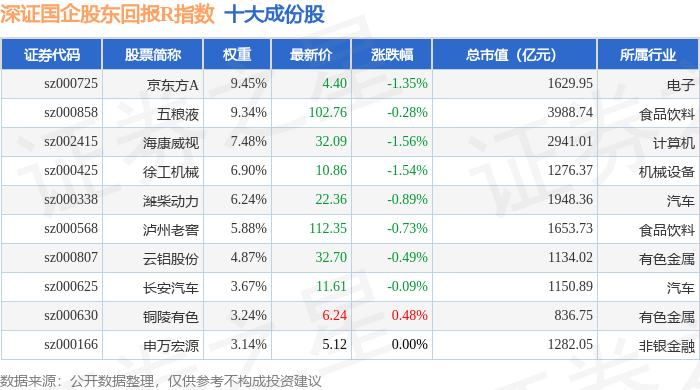 深证国企股东回报R(470064)指数十大成份股详情如下: