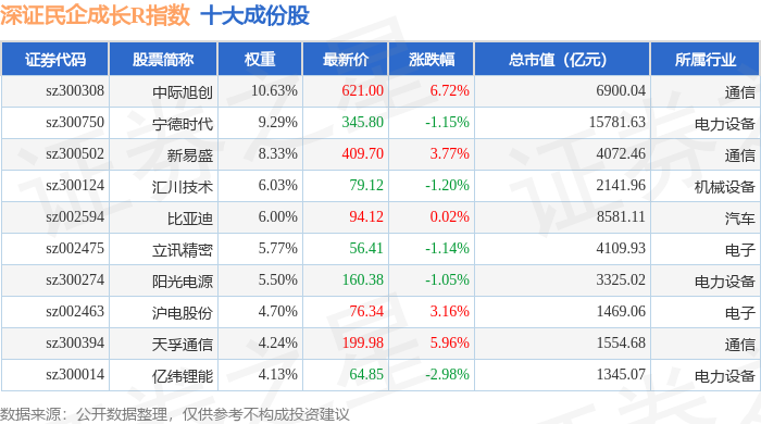 深证民企成长R(470071)指数十大成份股详情如下: