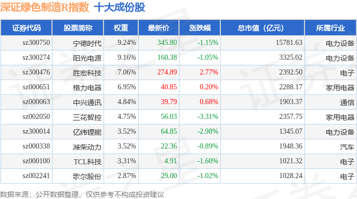 深证绿色制造R(470069)指数十大成份股详情如下: