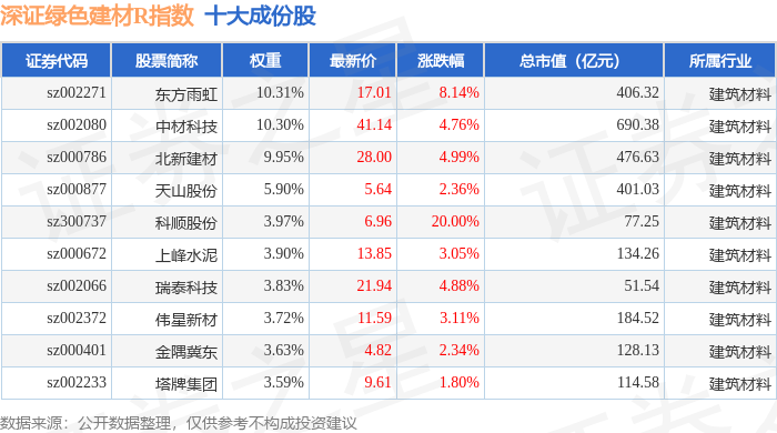 深证绿色建材R(470077)指数十大成份股详情如下:
