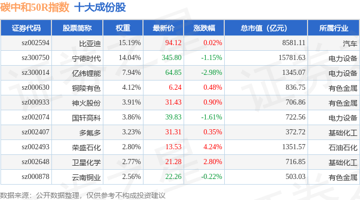 证券之星消息,1月22日,碳中和50R(480021)指数报收于2602.45点,涨0.21%,成交526.71亿元,换手率1.53%。当日该指数成份股中,上涨的有32家,浙富控股以9.93%的涨幅领涨,下跌的有17家,南网能源以4.44%的跌幅领跌。