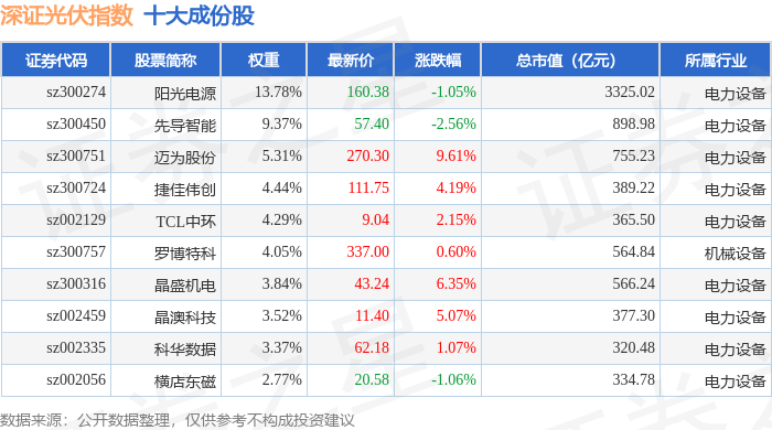 证券之星消息,1月22日,深证光伏(970035)指数报收于4209.33点,涨0.93%,成交553.7亿元,换手率4.8%。当日该指数成份股中,上涨的有33家,宇晶股份以10.0%的涨幅领涨,下跌的有15家,晓程科技以5.84%的跌幅领跌。