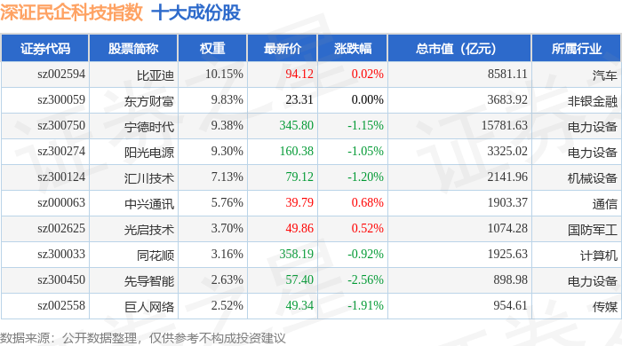 深证民企科技(970059)指数十大成份股详情如下: