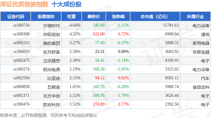 深证优质信披(970065)指数十大成份股详情如下: