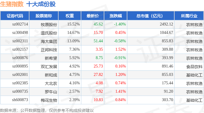 资金流向方面,生猪指数(980073)成份股当日主力资金净流出合计2.84亿元,游资资金净流出合计1.78亿元,散户资金净流入合计4.62亿元。成份股资金流向详情见下表: