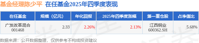 证券之星消息,截止2025年四季度末,基金经理陈少平管理的广发改革混合(001468)季度净值涨2.13%。