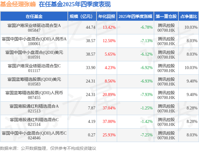 证券之星消息,截止2025年四季度末,基金经理张峰旗下共管理9只基金,本季度表现最佳的为富国港股通红利精选混合A(021513),季度净值跌1.25%。