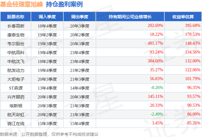 章旭峰管理的富国产业升级混合A基金在18年4季度买入长春高新,在持有1年又3个季度后在20年3季度卖出。持有期间的估算收益率为395.68%,持有期间长春高新在2018年到2020年的年报归属净利润增幅达202.69%。