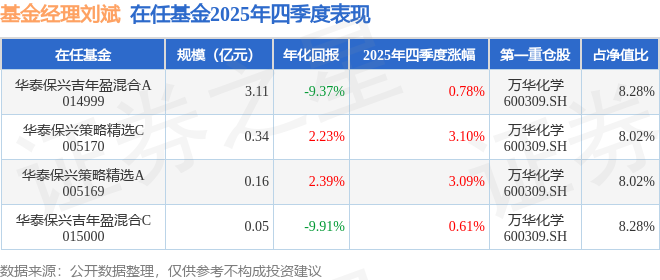 证券之星消息,截止2025年四季度末,基金经理刘斌旗下共管理4只基金,本季度表现最佳的为华泰保兴策略精选C(005170),季度净值涨3.1%。