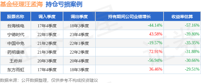 汪孟海管理的富国研究优选沪港深灵活配置混合A基金在17年4季度买入台海核电,在持有3个季度后在18年3季度卖出。持有期间的估算收益率为-57.16%,持有期间台海核电在2017年到2018年的年报营业总收入降幅为44.14%。