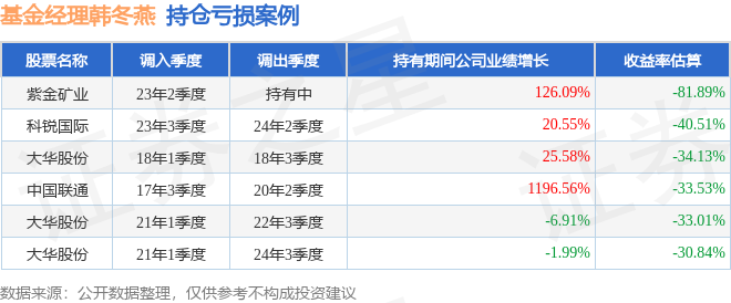 韩冬燕管理的诺安低碳经济股票A基金在23年2季度买入紫金矿业,已连续持有2年又2个季度。持有期间的估算收益率为-81.89%,持有期间紫金矿业在2023年到2025年的中报归属净利润增幅达126.09%。
