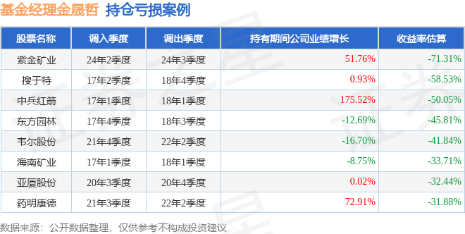 金晟哲管理的博时恒泰债券A基金在24年2季度买入紫金矿业,在持有1个季度后在24年3季度卖出。持有期间的估算收益率为-71.31%,持有期间紫金矿业在2023年到2024年的年报归属净利润增幅达51.76%。