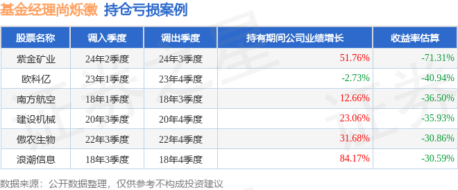 尚烁徽管理的华泰保兴吉年利定开基金在24年2季度买入紫金矿业,在持有1个季度后在24年3季度卖出。持有期间的估算收益率为-71.31%,持有期间紫金矿业在2023年到2024年的年报归属净利润增幅达51.76%。