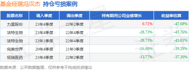 冯汉杰管理的中加聚优一年定开混合A基金在21年4季度买入力星股份,在持有2个季度后在22年2季度卖出。持有期间的估算收益率为-47.68%,持有期间力星股份在2021年到2022年的年报营业总收入增幅达0.71%。