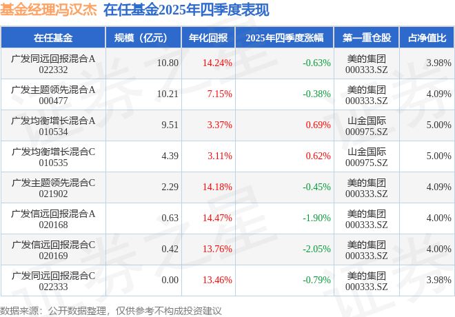 证券之星消息,截止2025年四季度末,基金经理冯汉杰旗下共管理8只基金,本季度表现最佳的为广发均衡增长混合A(010534),季度净值涨0.69%。