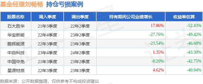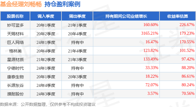 刘畅畅管理的华安文体健康混合A基金在21年2季度买入星源材质,在持有1个季度后在21年3季度卖出。持有期间的估算收益率为97.42%,持有期间星源材质在2020年到2021年的年报归属净利润增幅达133.49%。