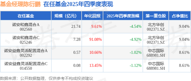 陈衍鹏管理的诺安益鑫灵活配置混合A基金在21年1季度买入富瀚微,在持有2个季度后在21年3季度卖出。持有期间的估算收益率为95.25%,持有期间富瀚微在2020年到2021年的年报归属净利润增幅达315.01%。