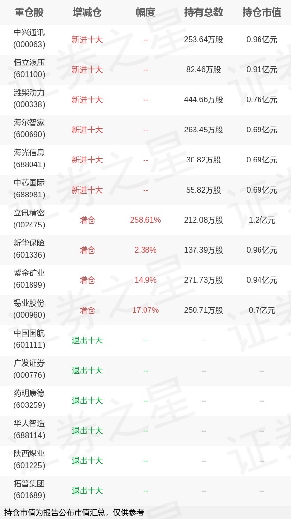证券之星消息,1月22日景顺长城基金旗下陈静 王勇管理的景顺长城景盈双利债券型基金公布年报,近1年净值增长率11.42%。与上一季度相比,该基金前十大重仓股新增中兴通讯,恒立液压,潍柴动力,海尔智家,海光信息,中芯国际;并对立讯精密增仓152.94万股,为该基金第一大重仓股;中国国航,广发证券,药明康德,华大智造,陕西煤业,拓普集团等退出前十大重仓股;详细数据如下: