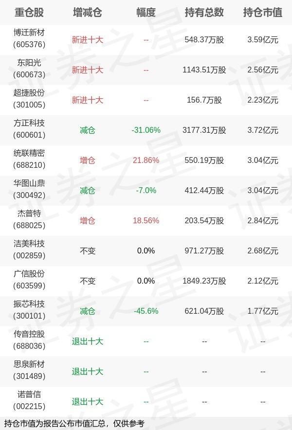 证券之星消息,1月22日华夏基金旗下钟帅管理的华夏行业景气混合型基金公布年报,近1年净值增长率72.03%。与上一季度相比,该基金前十大重仓股新增博迁新材,东阳光,超捷股份;其中方正科技持仓占比4.64%,为该基金第一大重仓股;传音控股,思泉新材,诺普信等退出前十大重仓股;详细数据如下: