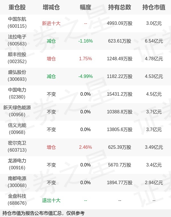 证券之星消息,1月22日前海开源基金旗下崔宸龙管理的前海开源公用事业行业股票型基金公布年报,近1年净值增长率38.74%。与上一季度相比,该基金前十大重仓股新增中国东航;其中法拉电子持仓占比8.65%,为该基金第一大重仓股;金盘科技等退出前十大重仓股;详细数据如下: