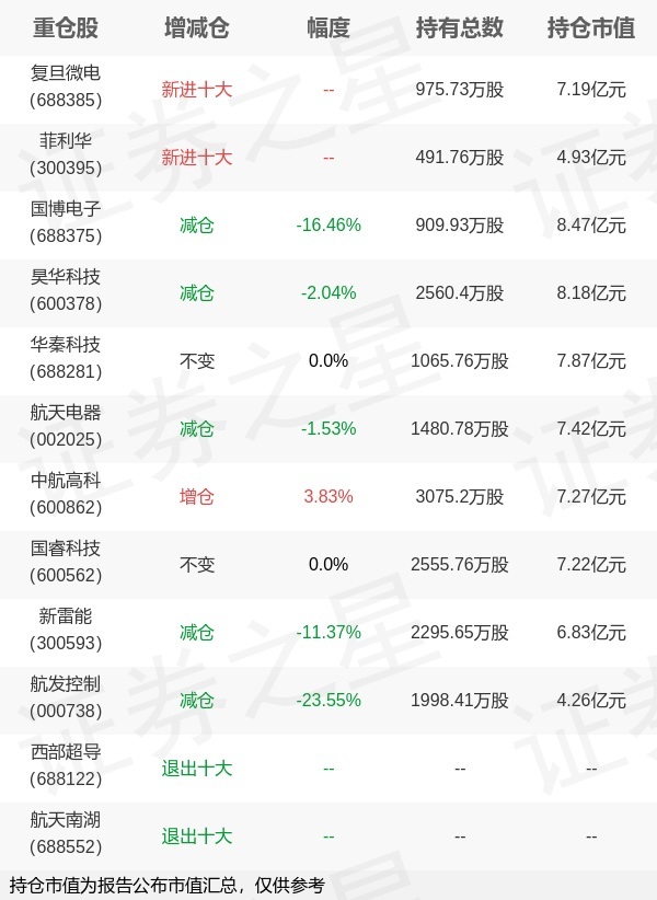 证券之星消息,1月22日华夏基金旗下万方方管理的华夏军工安全灵活配置混合型基金公布年报,近1年净值增长率80.41%。与上一季度相比,该基金前十大重仓股新增复旦微电,菲利华;其中国博电子持仓占比10.07%,为该基金第一大重仓股;西部超导,航天南湖等退出前十大重仓股;详细数据如下:
