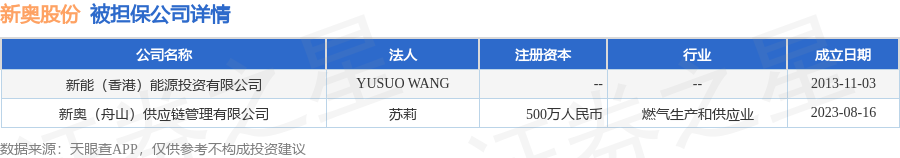 新奥股份1月21日披露2笔对外担保,被担保公司2家。对外担保明细如下表: