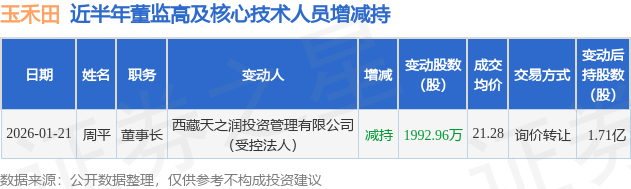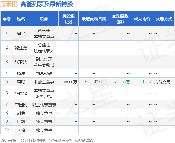 玉禾田的高管列表及最新持股情况如下: