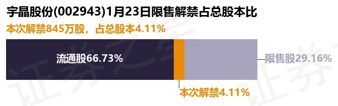 证券之星消息,根据市场公开信息整理,宇晶股份(002943)于1月23日将有845.0万股限售股份解禁,为公司定向增发机构配售股份,占公司总股本4.11%。(本次数据根据历史公告整理得出,实际情况以上市公司最新公告为准)本次解禁后,公司还有5990.78万股限售股份,占总股本29.16%。具体如下图所示: