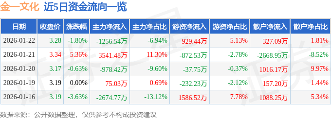 1月22日的资金流向数据方面,主力资金净流出1256.54万元,占总成交额6.94%,游资资金净流入929.44万元,占总成交额5.13%,散户资金净流入327.09万元,占总成交额1.81%。