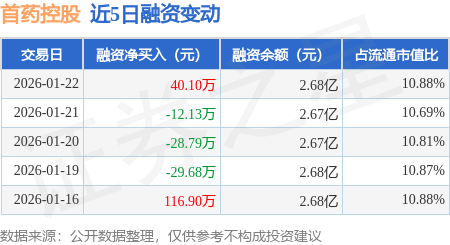 证券之星消息,1月22日,首药控股(688197)融资买入228.68万元,融资偿还188.58万元,融资净买入40.1万元,融资余额2.68亿元。