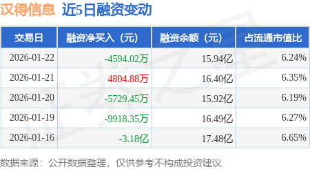 证券之星消息,1月22日,汉得信息(300170)融资买入2.75亿元,融资偿还3.21亿元,融资净卖出4594.02万元,融资余额15.94亿元。