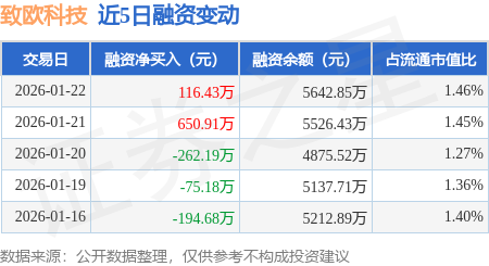 证券之星消息,1月22日,致欧科技(301376)融资买入681.51万元,融资偿还565.08万元,融资净买入116.43万元,融资余额5642.85万元,近20个交易日中有12个交易日出现融资净买入。