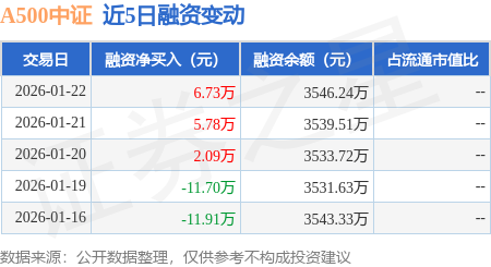 证券之星消息,1月22日,A500中证(159351)融资买入15.05万元,融资偿还8.31万元,融资净买入6.73万元,融资余额3546.24万元,近3个交易日已连续净买入累计14.61万元。