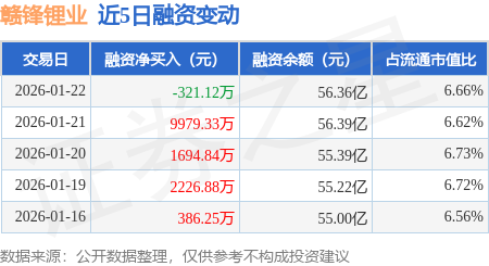 证券之星消息,1月22日,赣锋锂业(002460)融资买入3.51亿元,融资偿还3.54亿元,融资净卖出321.12万元,融资余额56.36亿元,近20个交易日中有16个交易日出现融资净买入。