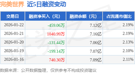 证券之星消息,1月22日,完美世界(002624)融资买入2749.87万元,融资偿还3208.93万元,融资净卖出459.06万元,融资余额7.12亿元。