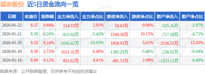1月22日的资金流向数据方面,主力资金净流入514.53万元,占总成交额2.91%,游资资金净流入10.63万元,占总成交额0.06%,散户资金净流出525.16万元,占总成交额2.97%。