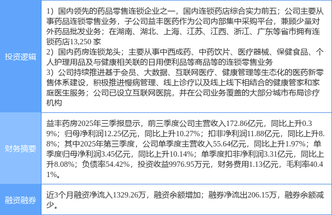 证券之星消息,益丰药房1月23日涨停收盘,收盘价24.81元。该股于9点31分涨停,23次打开涨停,截止收盘封单资金为1654.73万元,占其流通市值0.06%。