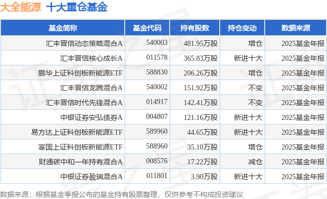 重仓大全能源的前十大公募基金请见下表: