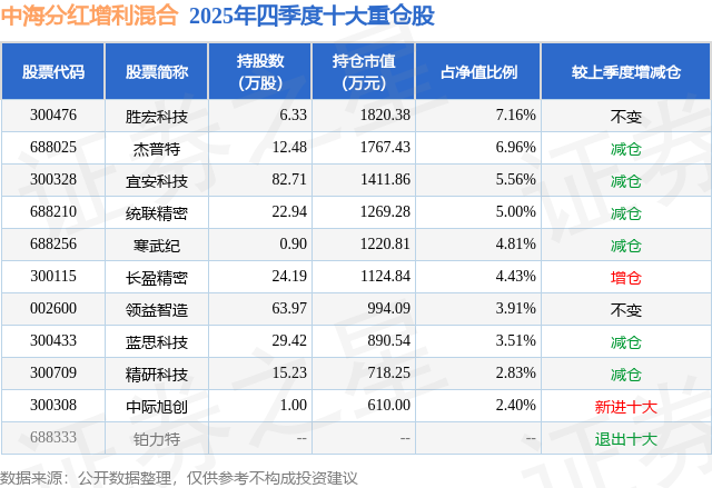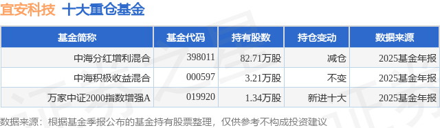 根据2025基金年报公募基金重仓股数据,重仓该股的公募基金共3家,其中持有数量最多的公募基金为中海基金的中海分红增利混合。中海分红增利混合目前规模为2.54亿元,最新净值0.8506(1月22日),较上一交易日上涨0.76%,近一年上涨18.7%。该公募基金现任基金经理为邱红丽。邱红丽在任的基金产品包括:中海积极收益混合,管理时间为2021年7月30日至今,期间收益率为1.4%;中海顺鑫灵活配置混合,管理时间为2021年7月30日至今,期间收益率为-45.11%。