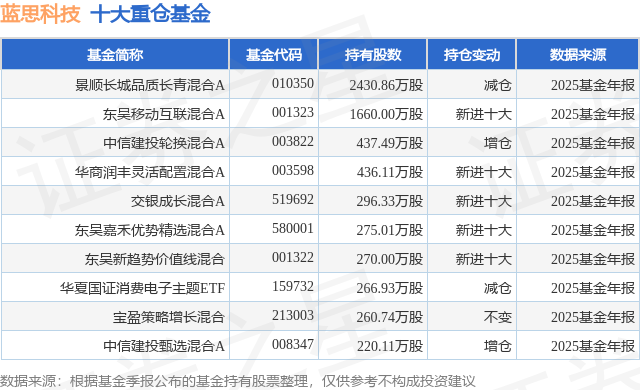 重仓蓝思科技的前十大公募基金请见下表: