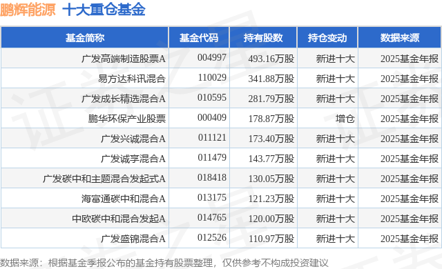 重仓鹏辉能源的前十大公募基金请见下表: