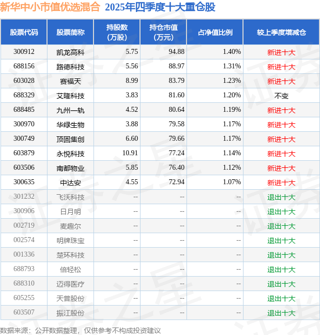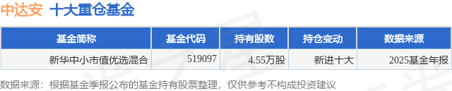 根据2025基金年报公募基金重仓股数据,重仓该股的公募基金共1家,其中持有数量最多的公募基金为新华基金的新华中小市值优选混合。新华中小市值优选混合目前规模为0.68亿元,最新净值3.6058(1月22日),较上一交易日上涨1.34%,近一年上涨58.16%。该公募基金现任基金经理为王永明。王永明在任的基金产品包括:新华鑫科技3个月滚动持有灵活配置混合A,管理时间为2021年9月3日至今,期间收益率为22.87%;新华科技创新主题灵活配置混合,管理时间为2024年12月27日至今,期间收益率为62.62%。