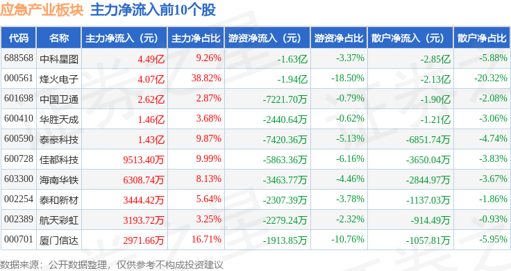 从资金流向上来看,当日应急产业板块主力资金净流入16.0亿元,游资资金净流出7.09亿元,散户资金净流出8.92亿元。应急产业板块个股资金流向见下表:
