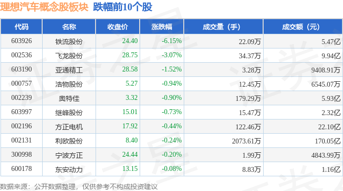 从资金流向上来看,当日理想汽车概念股板块主力资金净流出27.66亿元,游资资金净流入4.0亿元,散户资金净流入23.66亿元。理想汽车概念股板块个股资金流向见下表: