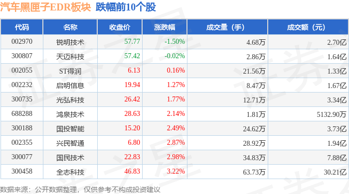 证券之星消息,1月23日汽车黑匣子EDR板块较上一交易日上涨3.95%,协创数据领涨。当日上证指数报收于4136.16,上涨0.33%。深证成指报收于14439.66,上涨0.79%。汽车黑匣子EDR板块个股涨跌见下表: