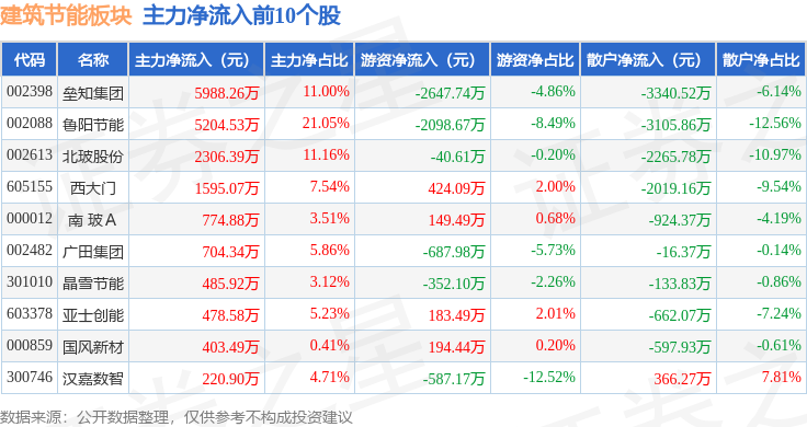 从资金流向上来看,当日建筑节能板块主力资金净流入5195.88万元,游资资金净流出8881.15万元,散户资金净流入3685.27万元。建筑节能板块个股资金流向见下表: